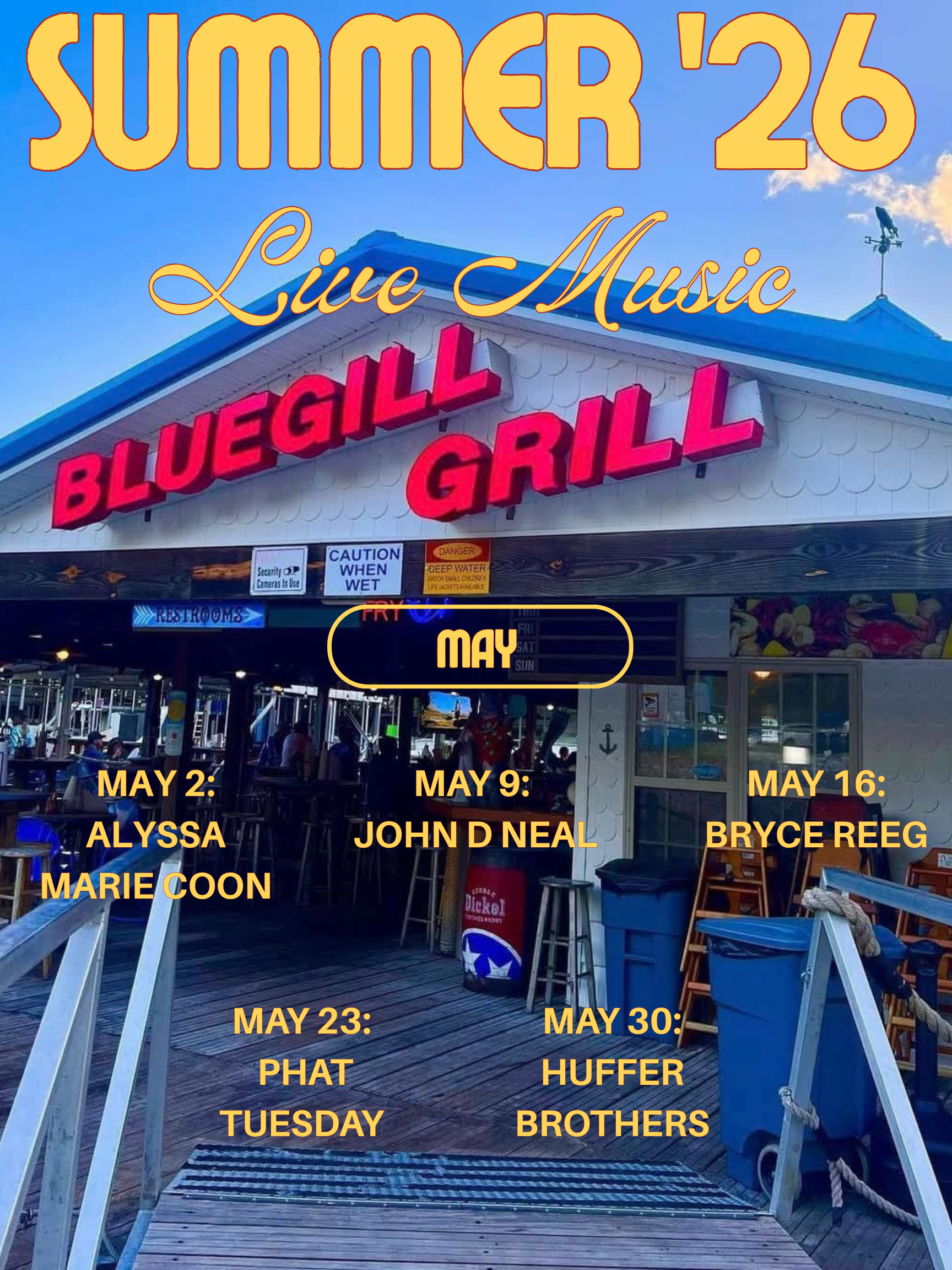 THE BLUEGILL GRILL IS OPEN